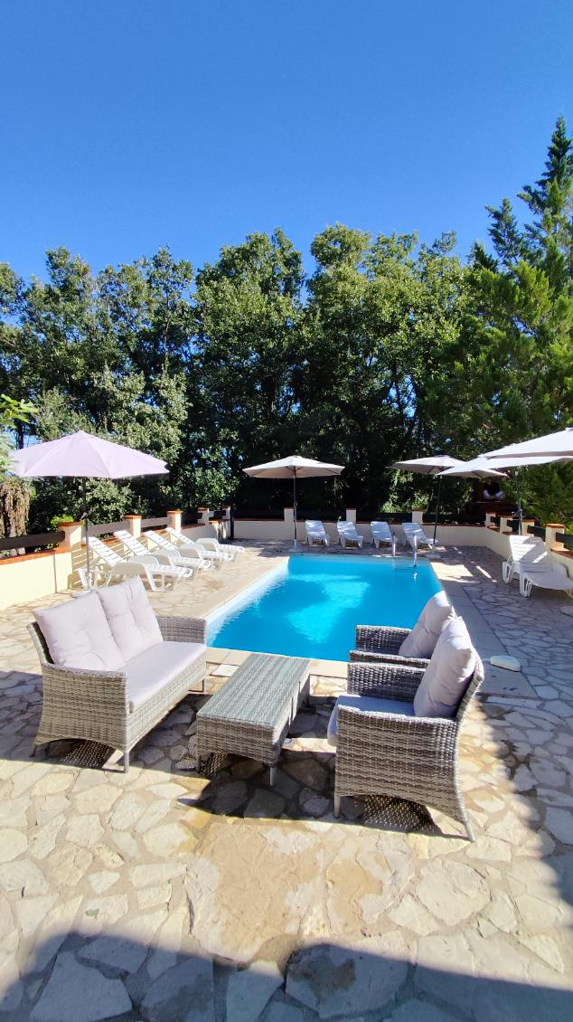 Villa entièrement climatisée (hormis la véranda et pergola) de 250 m2 dans un parc de chênes verts clos de 5000 m2 en pleine campagne avec une piscine privée sécurisée homologuée (système d'alarme et barrières), très calme ,sans vis à vis offrant une très grande qualité de vie en toute intimité . Différents espaces ombragés ou ensoleillés sont aménagés pouvant accueillir 15 personnes sans promiscuité.Aménagement intérieur et extérieur
